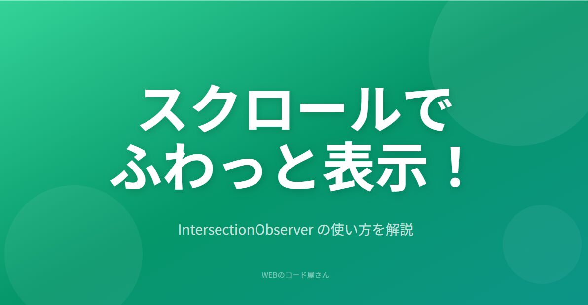 コーディングをしていると「スクロールしたら要素をふわっと表示させたい」という場面、よくありますよね。以前はjQueryのscrollイベントで実装することが多かったですが、今はバニラJSのIntersectionObserverを使うのがシンプルでおすすめです。